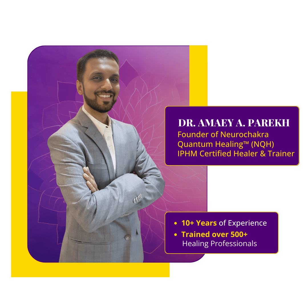 A seasoned IPHM healer, mentor, and founder of Neurochakra Quantum Healing™ (NQH), Dr. Amaey A. Parekh has helped countless professionals, therapists, and spiritual seekers master the art of deep, lasting healing through his structured, science-backed approach. With expertise in counseling psychology, energy healing, and emotional intelligence, he has built a reputation for guiding healers toward breakthrough client results and high-impact careers.